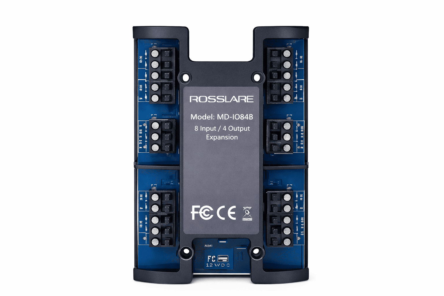 Controladora Rosslare MD-IO84. Módulo de expansión de 8 entradas y 4 salidas para dispositivos Rosslare de todo tipo y función en seguridad electrónica.