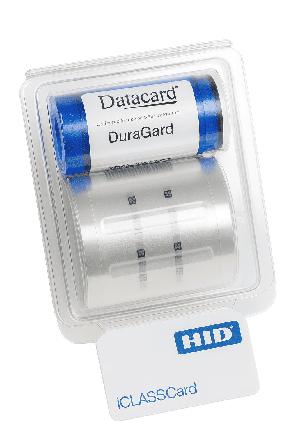 la cinta para laminado Datacard transparente permite poner una película protectora que aumenta la durabilidad de las tarjetas de identificación.